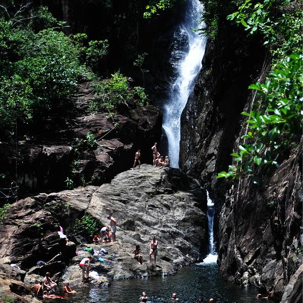 象岛有个瀑布 很多老外都喜欢去那玩水 游泳