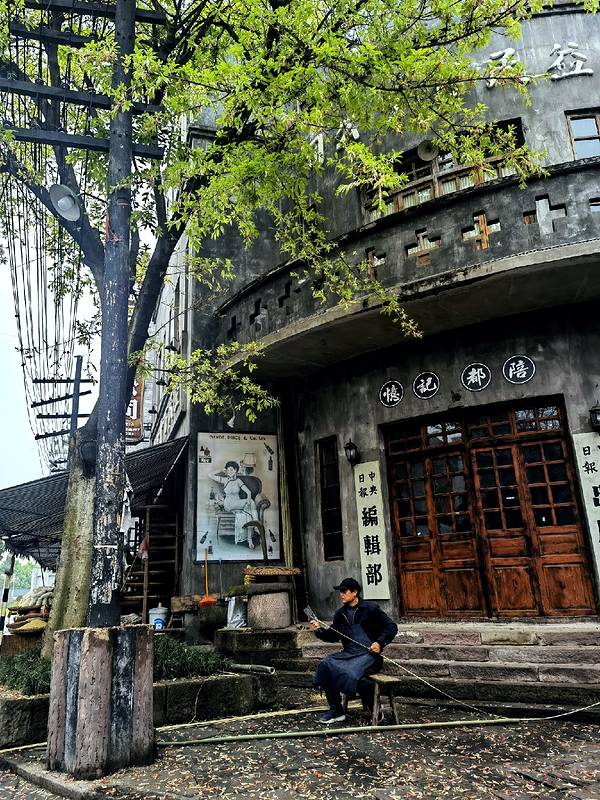 民国街的第一站就是伫立在景区广场的抗战胜利纪功碑,用手轻轻抚摸记功碑身,富有颗粒的砖瓦都是历史的触感。入口处不到500m就有提供民国时期服饰的店面,各色的旗袍、军官服、学生服、中山服,大家一定要去体验一下呀!老板都是上了年纪的大叔和爷爷,都很耐心的给想我们这种年轻的顾客讲述民国的历史!沿着主街长驱直入,可以路过国泰戏院、新华日报营业部、亨达利钟表行、天主教堂等民国时期的特色建筑。而喜欢看电影的我惊喜的发现,国泰戏院并非只是一个仿建建筑,它里面是真实的电影院,除了一些抗战老电影,就连最新的院线电影也有放映!我的本职专业是新媒体,自然对新华日报的营业部极度感兴趣,让我看看过去的媒体人,是怎样面对诡谲多变的国内时局和国际局势,他们怀着怎样的职业素养才坚守在重庆的大后方。