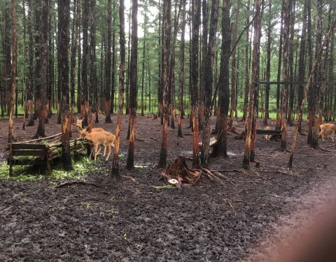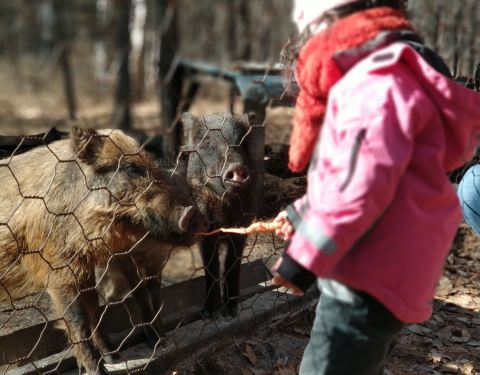 景区里边还有一些小木屋,旺季的时候也许可以居住吧,住在这里边,应该还是很幸福的。 推荐上次来的时候,在根河附近有一个敖鲁古雅景区,当时去看了看,感觉很不错,没想到这次在哈乌尔河附近,还有一个驯鹿部落,问了当地朋友才知道,原来还有好几个类似的,都是以驯鹿为卖点的。 感觉这个景区没有根...上次来的时候,在根河附近有一个敖鲁古雅景区,当时去看了看,感觉很不错,没想到这次在哈乌尔河附近,还有一个驯鹿部落,问了当地朋友才知道,原来还有好几个类似的,都是以驯鹿为卖点的。 感觉这个景区没有根河的那个大,也没有那个档次高,但是可玩性还是很强的,很适合游客。 一进门就是一片钻天的松林,如果夏天的时候,郁郁葱葱的,一定会更漂亮。 进大门大概200米,正对的就是一个撮罗子,也就是鄂伦春人住的桦树皮小屋,里边卖一些鄂伦春人的工艺品,不过大部分都是一些批发来的。小屋门口的左侧是一个吊起来的轮胎秋千,适合小朋友玩。 从这个撮罗子开始,就是一个环形的游览路线,先往左走,大概100米左右,有一个岔道可以从木栈道上下去,走30米左右,是一个圈养小野猪的猪圈,里边养着三头野猪,小朋友可以拿东西喂他们玩儿,喂啥都可以,他们基本上什么都吃。 再沿着木栈道走二三百米,就到了景区主要的构成部分,驯鹿园。 驯鹿园里边散养着大概二三十头驯鹿,可以在门口饲养员的手里买些苔藓来喂它,我来的时候十五块钱一筐,我猜这个价格应该是根据游客的多少变动的。 拎着苔藓进了驯鹿园以后,你就会变成一个香饽饽,驯鹿就会跟着你走,抢你手里的苔藓吃。好在这些大家伙虽然有着长长的、尖尖的角,但是性格还是很温顺的,只要你给吃的,就可以随便摸,不会像峨眉山的猴子一样凶巴巴的。 另外,驯鹿安静地在地上趴着的时候,真的是很温顺、很美丽的,难怪鄂伦春人喜欢驯养它。 再往前转半圈,就回到了景区门口。 除了这些东西以外,景区里边还有一些其他的小动物,小兔子、松鼠,还有小鸟,这些不是圈养的,是路上偶遇的,可遇而不可求。 整体上来讲,虽然园区不大,但是可玩的东西不少,还算比较丰富,很适合没来过的游客和小朋友来玩。 景区里边还有一些小木屋,旺季的时候也许可以居住吧,住在这里边,应该还是很幸福的。 推荐。 展开