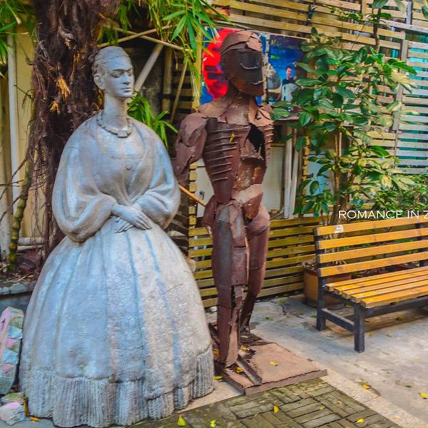年轻人不妨去看看,很多特别有创意的工艺品。适合年轻人的地方,潮流时尚适合年轻人的地方,潮流时尚。那个多啦a梦特别可爱,还有一对穿着时尚打扮服饰的洋人雕像在街道上,看上去已经有一段岁月了。年轻人不妨去看看,很多特别有创意的工艺品