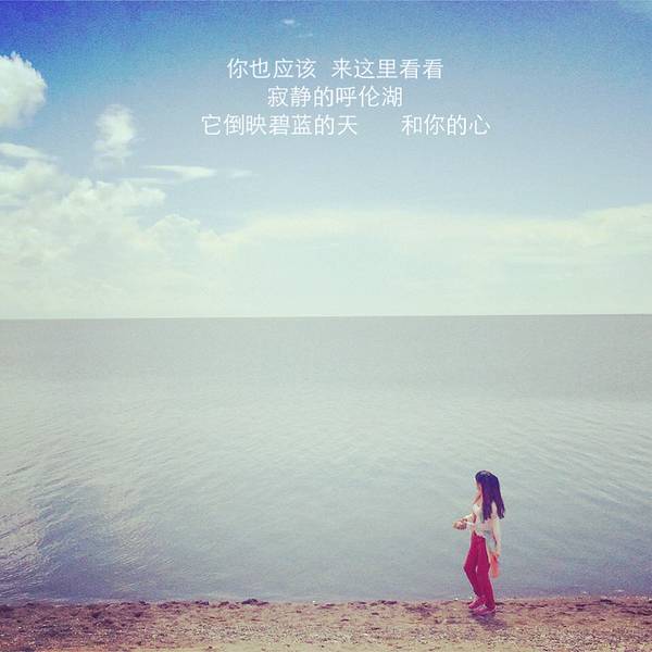 呼伦湖嗯,以为可以撒我一脸狗粮的两个傻缺,可以的。要离开的时候,突然一只马闯入镜头,没调好,糊了,太突然了。哎。不过看到的时候真的好美,”断肠人在天涯“的感觉,哈哈!