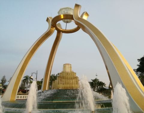 很大的公园,属于文莱的地标性建筑,这个类似一个大戒指的地方,很多人留念,上边的水晶很大很抢眼,...很大的公园,属于文莱的地标性建筑,这个类似一个大戒指的地方,很多人留念,上边的水晶很大很抢眼,大巴车可以开进去,里边有儿童乐园之类的设施
