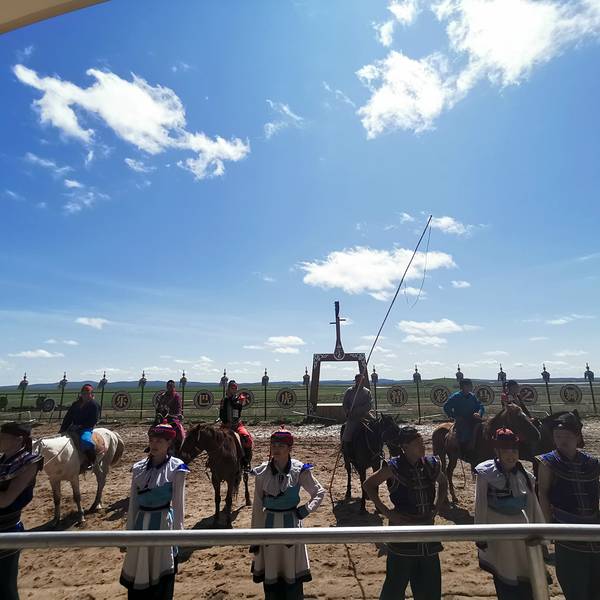 ◆【草原景区那达慕演绎】:10:30—11:30 在草原景区演艺广场欣赏大型草原演艺活动;套马表演、驯马表演、搏克表演、马术表演等,彻彻底底的接触草原牧民原始草原活动,感受草原活动的震撼演出。其中马术表演可分为倒挂金钩、马上站立、马上拾物、马镫藏人等等。