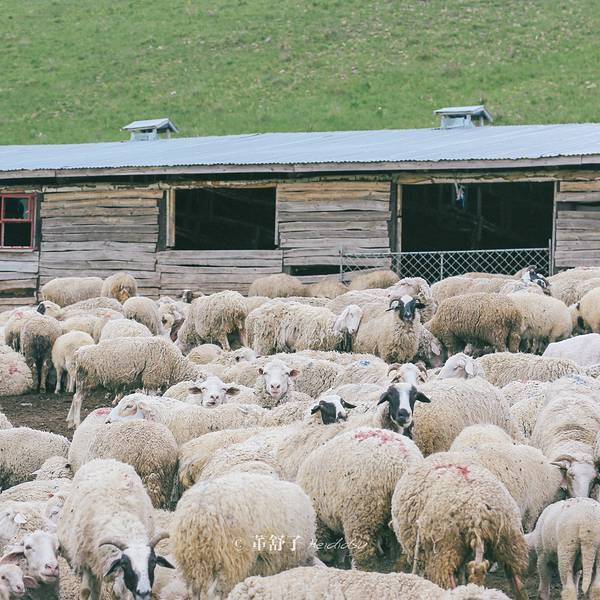在草原唯一被圈养的,只有这些属于牧民的羊群。这些年,许多人都奔到城里去打工赚钱,牧人反而少了,而真正热衷留在草原深处的那些人儿或许是因为离不开天地辽阔,或许是因为舍不得手里的柔嫩小崽,又或许仅仅暗暗期许内蒙的羊毛这些年能卖个更好的价钱。游客们总是看到满身雪白的羊群,抱抱小羊也是常规的旅行体验。但真实的羊群在天地间打滚,也没干净的和云朵似的。大小姐们下车视察,却忍不住被羊骚味给熏了回去。这一天是治愈的一天。其实我们并没有任何行程,走到哪儿是哪儿,开到哪儿是哪儿,一直在路上,看山看草看花,看云看雨看光。