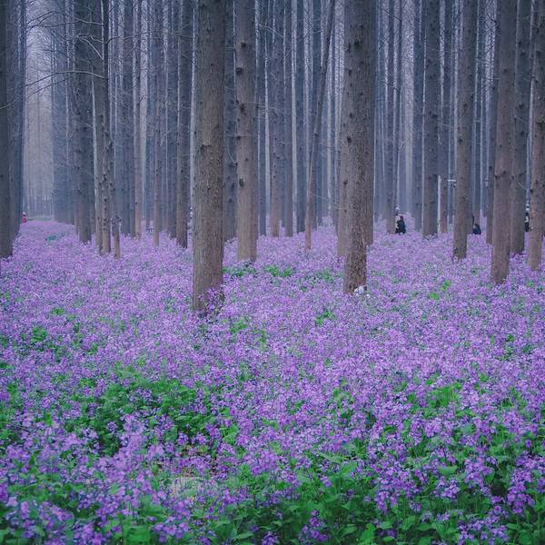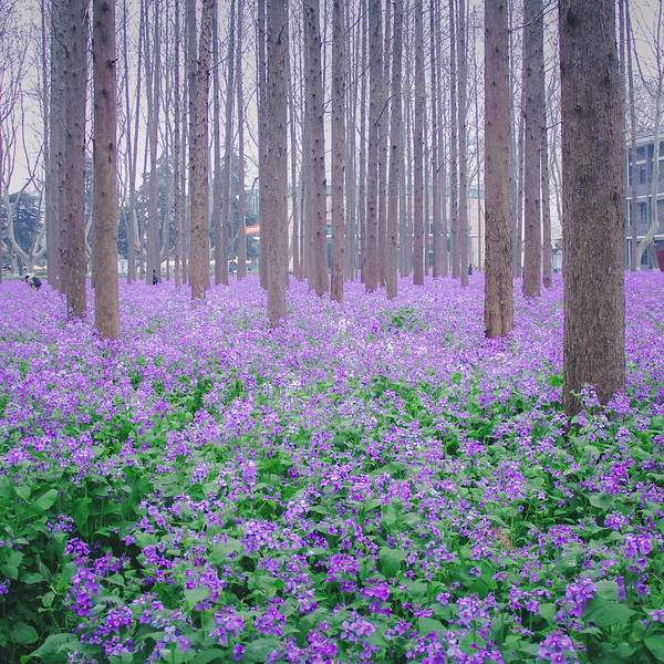如预期中的一般,那大片大片醉心的紫色如地毯般铺展在这春的大地上。