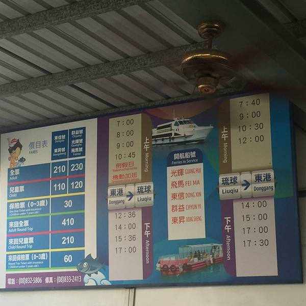 搭乘「高雄←→恒春,垦丁」班车(路线:高雄→小港→林园→东港)到【东港站】下车,车程约60至90分钟,抵达东港后再至【东港码头】(步行约10分钟)
