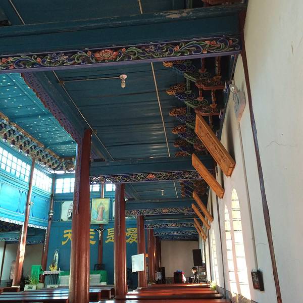 我们一直在路上,或是体验另一种生活这里是一个中西方交汇的建筑,第一次见这么中式的教堂。
