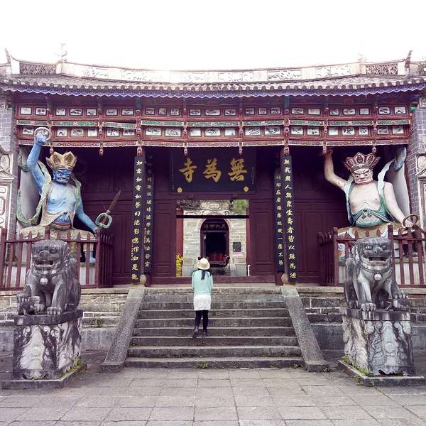 从停车场到无为寺大概半个小时左右。仰望门前的一棵千年唐杉十分壮观。始建于唐代的无为寺,小众又低调,大理国时期历任十位国君在此剃度出家。这里是丝毫没有被商业化的皇家寺庙。庙内有斋饭供应,不过需要提前一天预约。