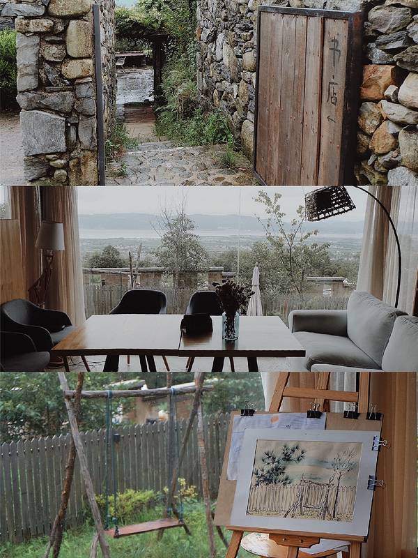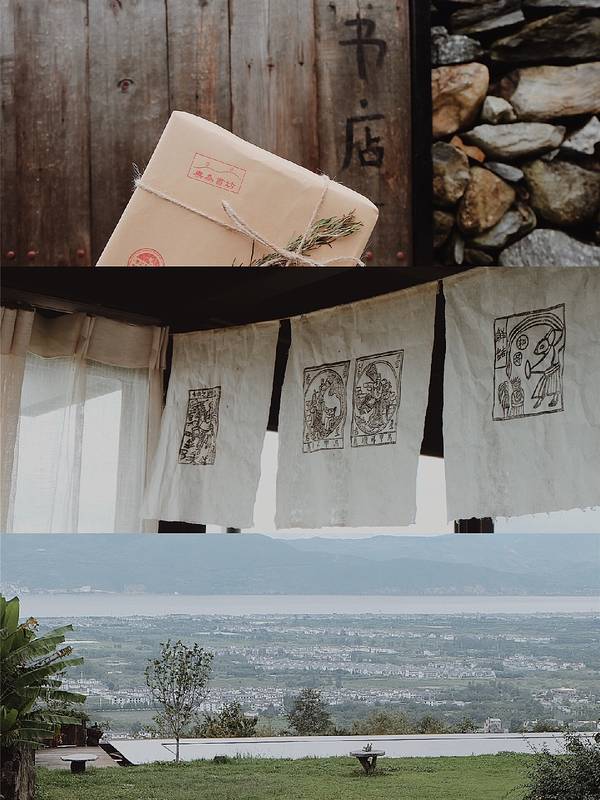 沿着左手边的小路继续走,途中有一段路没有树林遮蔽,可以看到远处的洱海!!超美的!大约20分钟可到书坊,入口十分隐蔽,大家不要错过了。这里大概是大理最隐秘的一家书店了吧,里面有咖啡茶水等供应,坐在沙发上就可以看到洱海!