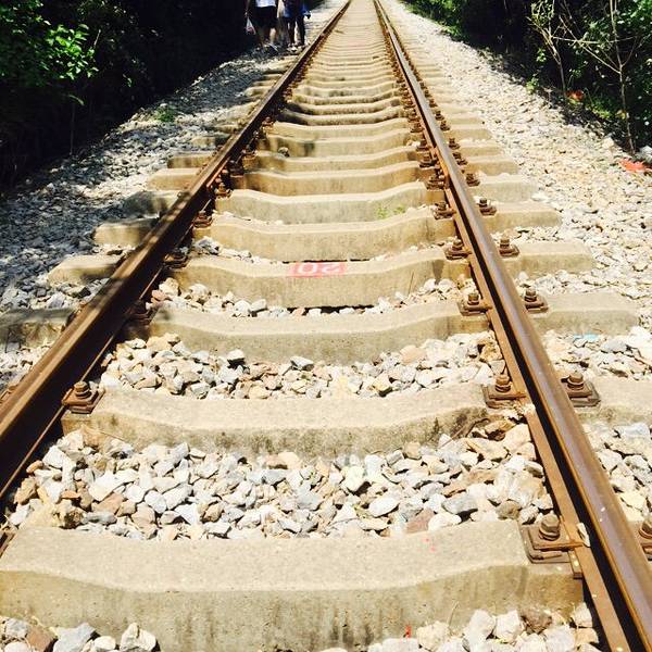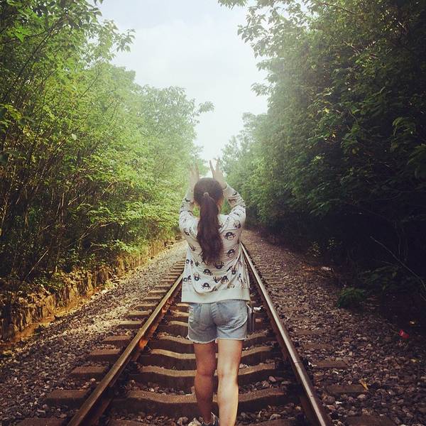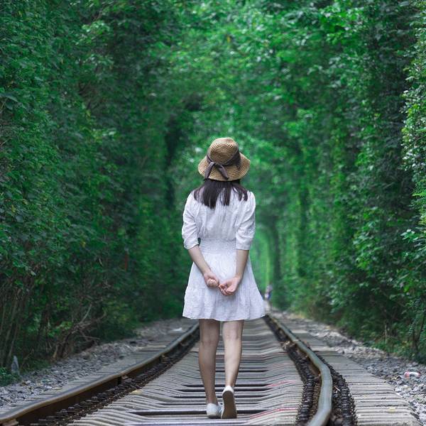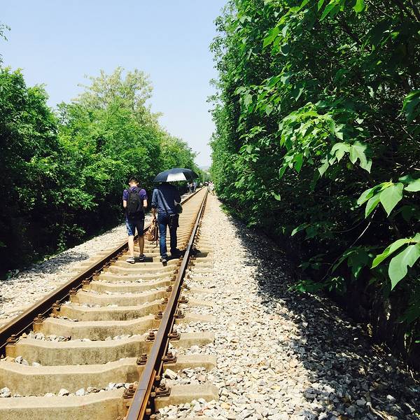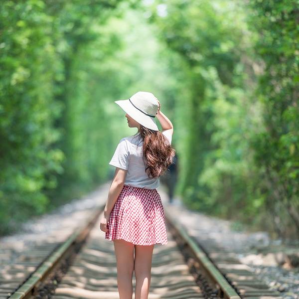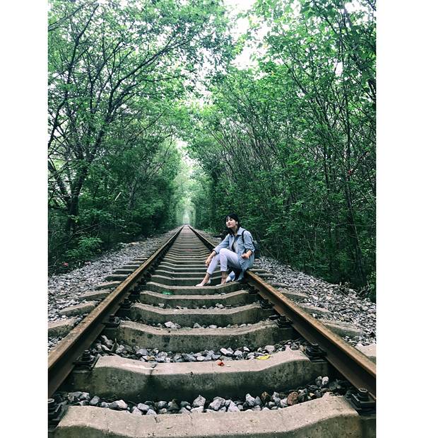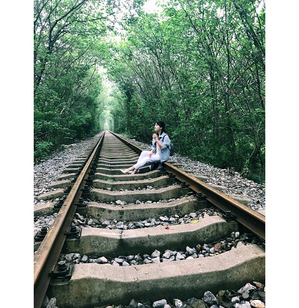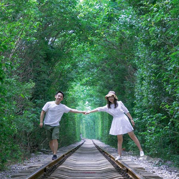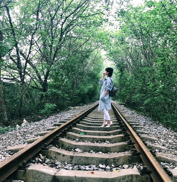 谢过老大爷之后,瑞奇和雪宝便向着铁轨深处进发。所谓的“江宁爱情隧道”,是南京江宁区的一段货运铁路,因其两旁被大量绿色植被所环绕,且像极了乌克兰的“爱情隧道”,于是网友们誉其为南京最清新铁路,也被冠上了“江宁爱情隧道”的美称。生机盎然的景色和对美好爱情的向往吸引了不少摄影爱好者和情侣慕名前来拍照。后来因影响交通安全,有关部门表示要在2014年年底将这些树木砍伐,最终因广大南京市民要求保留的原因,南京“爱情隧道”被保留了下来。初入“隧道”,擦肩而过的游客三两个,两边的绿色植被也并不是特别得茂盛,枝干和绿叶并没有像鹊桥一般相互交缠连接。瑞奇和雪宝手拉手踏着铁轨中间枕木慢慢走着,瑞奇此时终于体验到“两步太大,一步扯蛋”是如何的感觉了。