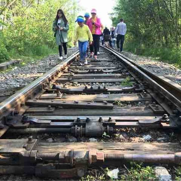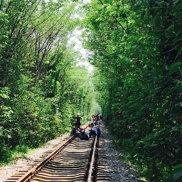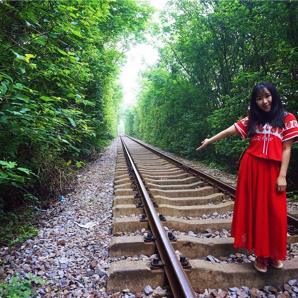 数百米的铁路两旁,繁茂浓密的树林由于过往火车的削磨,形成直直的“墙壁”,两侧树林上方的枝叶几乎要长到一起去,远远望去,就像一条绿色隧道,有如著名的乌克兰爱情隧道一般。