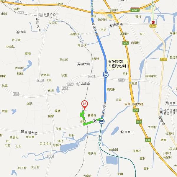 机场高速往禄口方向,在秣陵 谷里 正方大道出口下,右转往将军大道,到将军大道后左拐,前行3公里,看到银杏湖大道,右拐沿银杏湖大道前行500米,即看到一铁道口,停车,沿铁路北行500米即到!