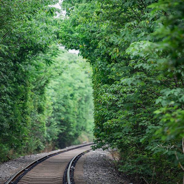夏季时分,郁郁葱葱的行道树包裹着铁道,火车从树林中穿行,十分美丽。江宁爱情隧道江宁爱情隧道