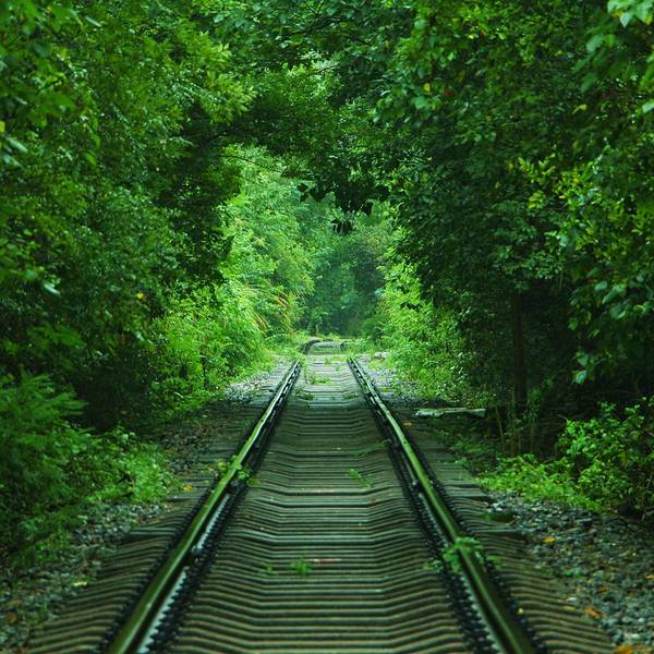 铁路两边被树木和藤蔓围绕,如同一道长长的拱门,坐落在铁轨之上,变成一条绿色通道。阳光不断从树叶的缝隙中照射下来,洒落在铁轨之上,放眼望去,如仙境一般。虫和鸟儿的叫声不时在耳边响起,让人似乎一下忘却了烦恼。置身于此,闭上眼睛,体会着最原始的大自然的气息~ 展开