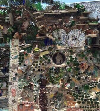 魔幻花园,费城市区的一个很小很小的算是景点吧,就是用一些废弃物,比如瓷片啊彩色瓶子啊之类的东西,堆砌了一个蛮诡异的装置吧