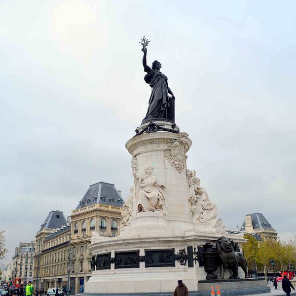 共和广场距离古竞技场和古剧场都不远,其四周建筑也都很有历史感,尤其以广场东边雕刻着宗教故事的圣托菲姆教堂(Eglise Saint Trophirme)较为典型。广场北边是建于1673年的市政厅(Hotel de Ville),往北走大概50米就是有名的梵高咖啡馆。广场四周的街区是有名的旅游区,有众多的旅游纪念品出售。共和广场中间有座高20米的罗马方尖碑,较早它竖立于罗马皇帝君士坦丁二世(316-340年,337-340年在位)时期的阿尔勒古罗马杂技场(Roman Circus),后因杂技场被废弃,方尖碑倒塌断裂为两截,1389年被发现,但直到1676年才重新立于此地。