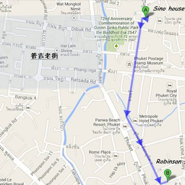 在普吉镇内,从镇内坐Tuk-tuk车约30泰铢。