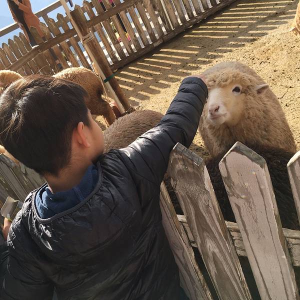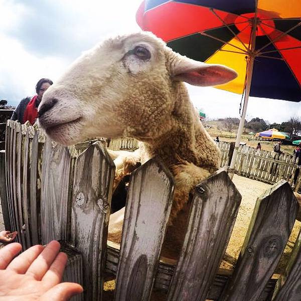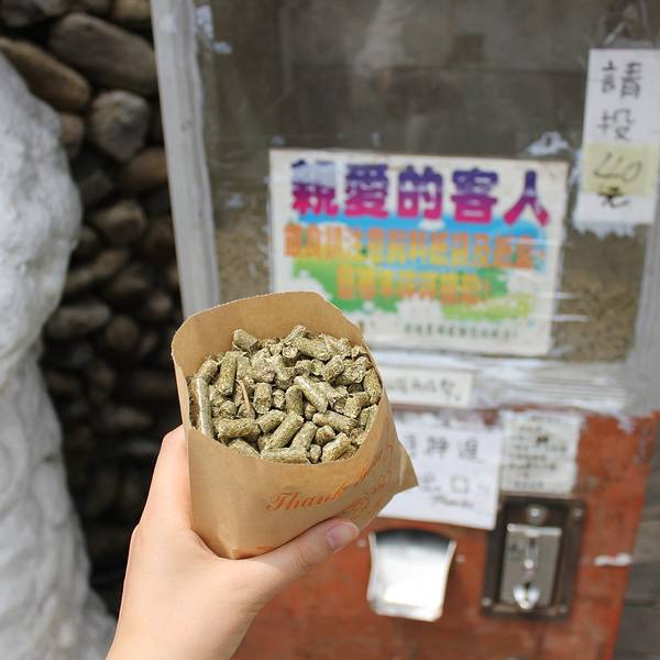 这边的贩售机大一点儿,可以40台币买一大份!和前面一只小羊比较下,亲你的吃相稍微有点难看哦后来走到了羊咩咩城堡~这边有圈养一些小羊~还有可以购买一些羊咩咩制品,比如羊奶啊,冰淇淋啊,羊奶皂等等