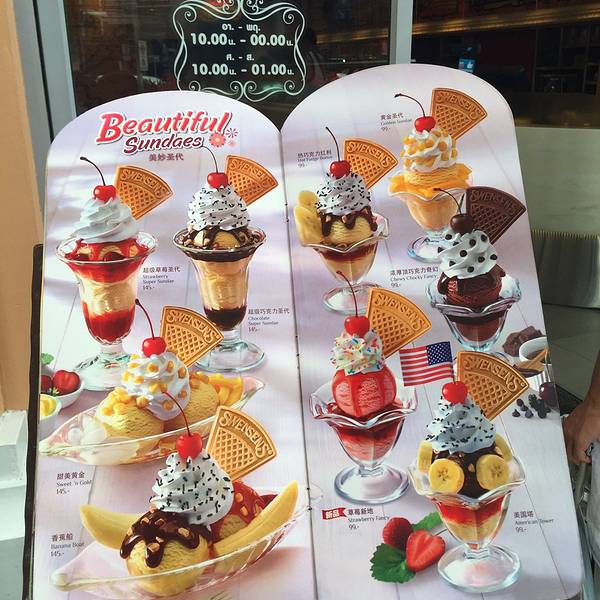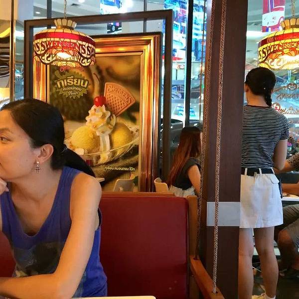 Swensen's冰淇淋店实在是太太太赞啦!我们去清迈Central festival百货公司附近的Big C Extra超市买完东西出来,看到门口有一个好大的榴莲冰淇淋的广告牌,只是看一眼,就觉得口水已经无法抑制了。我平时不吃生冷...Swensen's冰淇淋店实在是太太太赞啦!我们去清迈Central festival百货公司附近的Big C Extra超市买完东西出来,看到门口有一个好大的榴莲冰淇淋的广告牌,只是看一眼,就觉得口水已经无法抑制了。我平时不吃生冷的东西,但是这冰淇淋的广告太诱人了,我们都走到车上了,纠结了半天还是决定去吃。