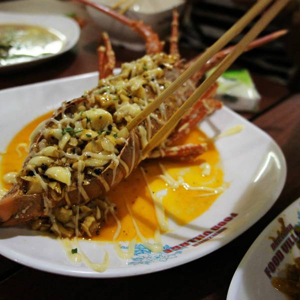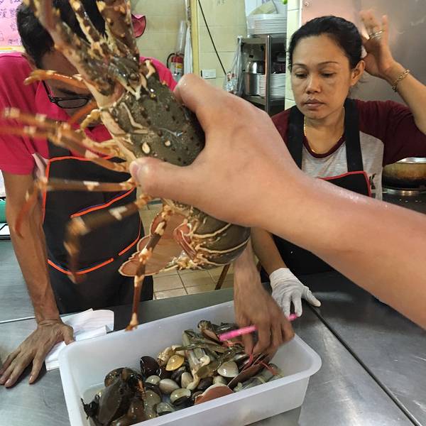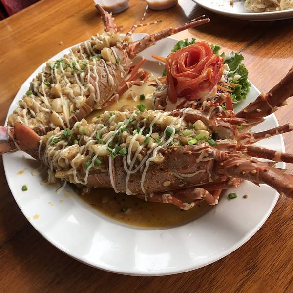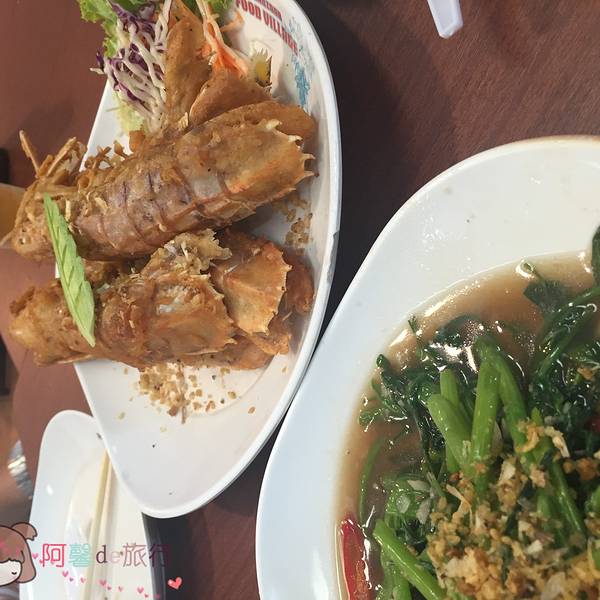 这家店在网上最出名,主要是有中文的招牌,老板会说一点中国话吧,当然,态度也是比较热情的。 这里代工一只龙虾是200B,其它的菜是50B一个吧,挺公道的,我们一起搞完再点饭呀、青菜也就400B这样,不过龙虾只有2...