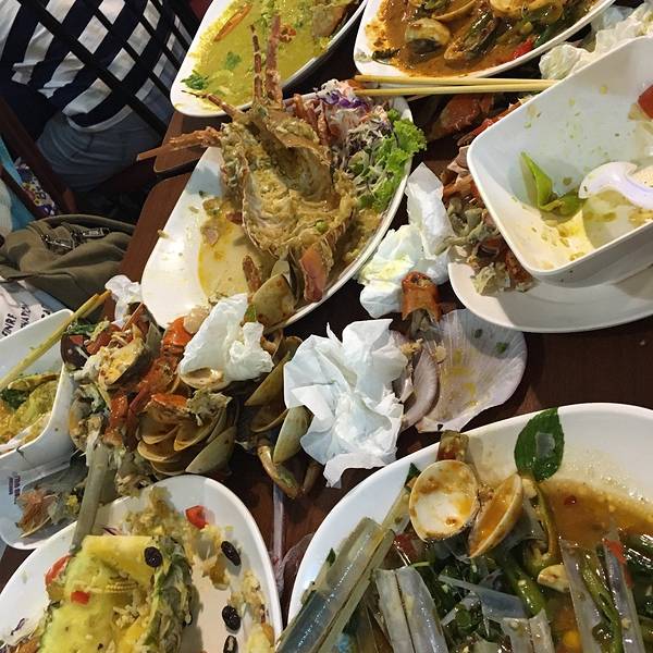 这家是在班赞海鲜市场二楼的加工店,上面得【班赞海鲜市场】已经说的很详尽,就不赘述了; 这家的【中文】很不错 【价格】没吃过其他家,所以没有对比,六样海鲜1300B,空心菜100B,需要充卡消费 【环境】就是美食广场的感觉;