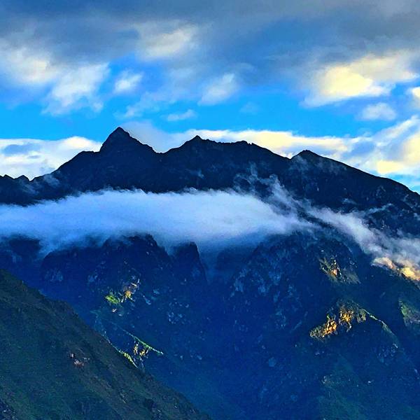 墨尔多山脉起于阿坝州鹧鸪山,主峰5000米,在大、小金川汇合处丹巴县境内突兀矗立,高耸入云,好似一个蓝色宝瓶横空摆放。