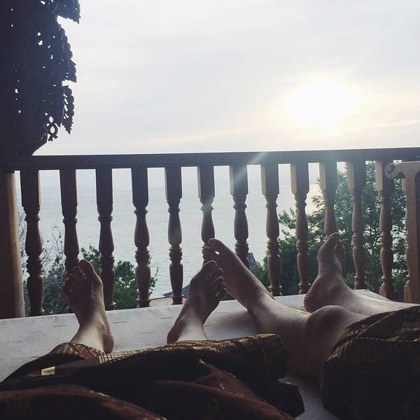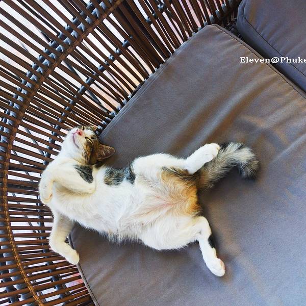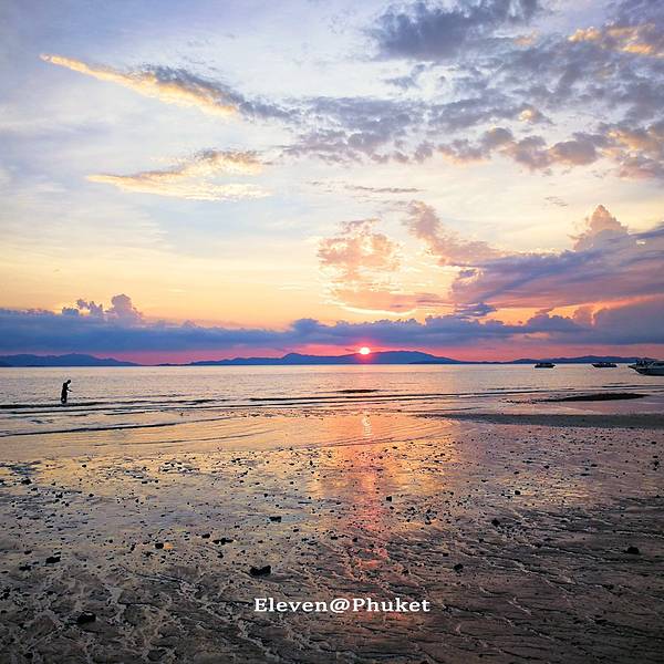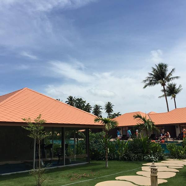 旅程最后两天,去探索另一个小众岛屿—— 大长岛 。 大长岛 距离普吉本岛很近,坐船大概20分钟就到了,又一个还没被游客攻占的岛屿,还保留着原始的岛上风光。大长岛 的风光,或许不够惊艳,但胜在它有一份人烟稀少的宁静,仿佛承包了一整座海岛。岛上只有几家度假村,我的两日游行程里住的是这一家“蓝湾别墅度假村”,红褐色的联排木屋,贯通的环道泳池,色彩搭配很是好看。一个人住情侣房,对着洒满鸡蛋花和玫瑰花瓣的大床,感觉很愧疚,真是有点浪费呢。每个房间都直通泳池,从阳台上可以直接跳下去。清澈的蓝色泳池,一进门就忍不住凹造型拍照~门口这边的风景,也是超级和谐的漂亮,晴空万里,飘着多多白云,方圆百里都不见一人,就好像是自己承包了这个度假村哈哈哈。泳池倒影着蓝天与房屋,一切都宁静得很美好,这就是度假该有的状态吧。吃过午饭,睡个午觉,起来已是傍晚,到海边走一走,看岛上的孩子在夕阳下踢足球,看情侣携手在海边散步,好不惬意。有些阴天的傍晚,再换一种白平衡,就变成另一种风格的日落。嗯,就像很多事情,换个角度,就变成另一种心情。如此凄美的夕阳,如此宁静的海滩,无论做什么似乎都不会有人来干扰,那就尽情自拍吧,没有颜值,那就留给背影给全世界吧。夜晚,繁星满天,是在 大城 市里寻觅不到的风景。第二天睡到自然醒,酒店会贴心地把早餐送到房间,吃完早餐出来走一走,此时的天空美到炸裂,通透清澈的蓝天,棉花糖一样的云朵,点缀着橙色的房屋与绿色的丛木,“天空控”要醉了醉了。在办理入住时,前台会问你希望几点供应早餐,给个确切时间,第二天的早餐便会如约而至到你房间了。一人份的早餐,有点奢侈的浪费。酒店大堂沙发椅上,躺的比葛优躺还厉害,估计它也在度假吧。