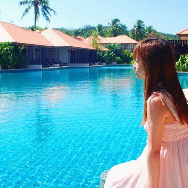 旅程最后两天,去探索另一个小众岛屿—— 大长岛 。 大长岛 距离普吉本岛很近,坐船大概20分钟就到了,又一个还没被游客攻占的岛屿,还保留着原始的岛上风光。大长岛 的风光,或许不够惊艳,但胜在它有一份人烟稀...旅程最后两天,去探索另一个小众岛屿—— 大长岛 。 大长岛 距离普吉本岛很近,坐船大概20分钟就到了,又一个还没被游客攻占的岛屿,还保留着原始的岛上风光。大长岛 的风光,或许不够惊艳,但胜在它有一份人烟稀少的宁静,仿佛承包了一整座海岛。岛上只有几家度假村,我的两日游行程里住的是这一家“蓝湾别墅度假村”,红褐色的联排木屋,贯通的环道泳池,色彩搭配很是好看。一个人住情侣房,对着洒满鸡蛋花和玫瑰花瓣的大床,感觉很愧疚,真是有点浪费呢。每个房间都直通泳池,从阳台上可以直接跳下去。清澈的蓝色泳池,一进门就忍不住凹造型拍照~门口这边的风景,也是超级和谐的漂亮,晴空万里,飘着多多白云,方圆百里都不见一人,就好像是自己承包了这个度假村哈哈哈。泳池倒影着蓝天与房屋,一切都宁静得很美好,这就是度假该有的状态吧。吃过午饭,睡个午觉,起来已是傍晚,到海边走一走,看岛上的孩子在夕阳下踢足球,看情侣携手在海边散步,好不惬意。有些阴天的傍晚,再换一种白平衡,就变成另一种风格的日落。嗯,就像很多事情,换个角度,就变成另一种心情。如此凄美的夕阳,如此宁静的海滩,无论做什么似乎都不会有人来干扰,那就尽情自拍吧,没有颜值,那就留给背影给全世界吧。夜晚,繁星满天,是在 大城 市里寻觅不到的风景。第二天睡到自然醒,酒店会贴心地把早餐送到房间,吃完早餐出来走一走,此时的天空美到炸裂,通透清澈的蓝天,棉花糖一样的云朵,点缀着橙色的房屋与绿色的丛木,“天空控”要醉了醉了。在办理入住时,前台会问你希望几点供应早餐,给个确切时间,第二天的早餐便会如约而至到你房间了。一人份的早餐,有点奢侈的浪费。酒店大堂沙发椅上,躺的比葛优躺还厉害,估计它也在度假吧。