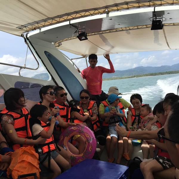 原本对于海岛的理解仅仅为一次出海,玩个沙滩,浮个小潜,没有太多的奢求,可能就是希望海水干净点。在携程看了所有当地游后,选了个评论都说团很小的【长岛+蓝钻岛+鸡蛋岛】~团小说明人少,就不喜欢团里有40-50人的那种~ 去了后,真是出乎意料的好啊,连妹妹和kin都说,比斯米兰好玩太多~当然其实两个地方的类型不能算一样的。后面慢慢介绍~整个团一共8个人,我们和另外组家庭~导游小新(帅哥)说,想玩多久就玩多久,不限制时间~跟自由行没差别了~连浮潜都能一组化教学了~特别是小新还帮我们下海拍了很多小鱼,好开心~ 私密小岛——瑤诺岛 很多人看到岛名,肯定会问,你的团里面没有叫瑤诺岛的嘛?来来来,我来先普及一下芝士 瑤诺岛(kohyaonoi),有“小长岛”之称,位于攀牙湾内,在普吉岛东北75公里处~ 瑤诺岛的上岛点在西面,是BLUE BAY RESORT的度假村,虽然这个度假村不及超五星的位于岛东面的six sense,但已经足以满足各位的度假享受了~ps:价位在5-600,比较适合有预算的各位~
