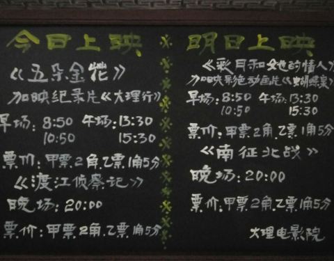 就是原来的大理电影院改建的,还有点意思,里面展出的都是放映胶片电影的老设备,老的电影海报,书刊,道具靠近古城的南面,就是原来的大理电影院改建的,还有点意思,里面展出的都是放映胶片电影的老设备,老的电影海报,书刊,道具,电影票等等,免费开放。