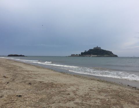 难得终于见到了无边的大沙滩,但没有蓝天白云与灿烂阳光,想躺在沙滩晒太阳,绝对是异想天开Marazion:小圣米歇尔山在水中