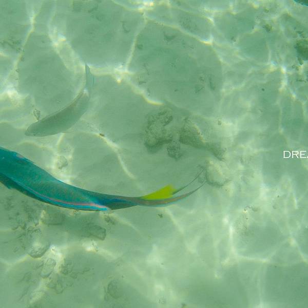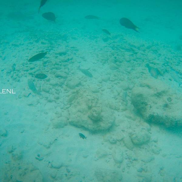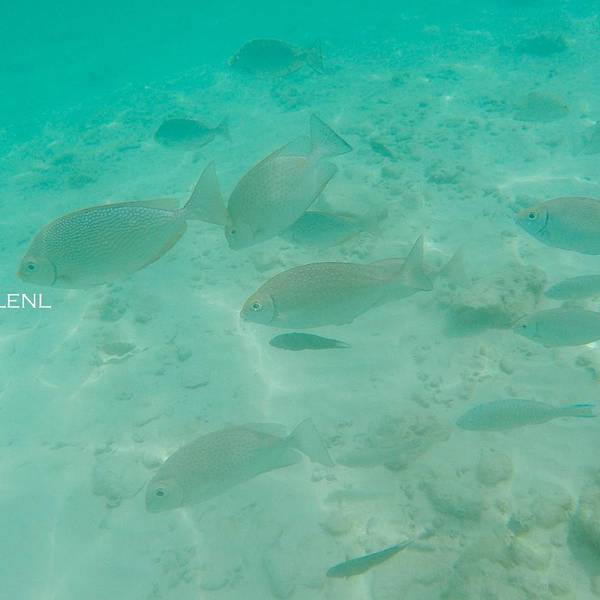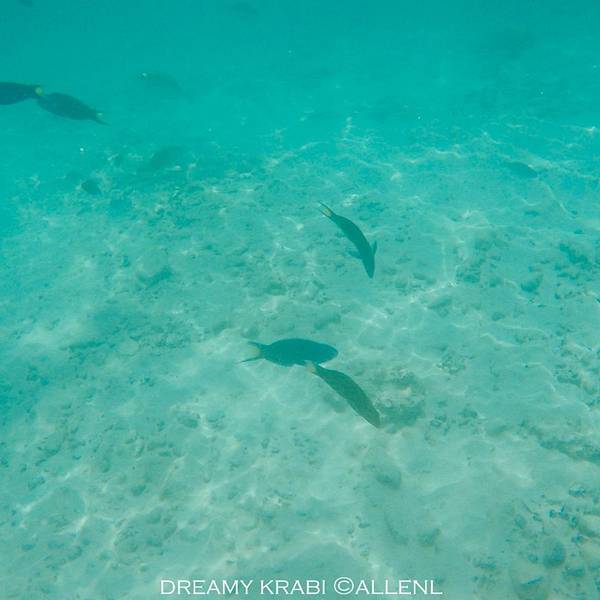 所以,附近的小鱼都被吸引了过去。看到了这种个头稍大的蓝色鱼,但还是没看到像NEMO那样的小丑鱼。哈哈,好可爱,好想捧起来。 跟这两位哥们聊了下,原来是帝都的朋友。