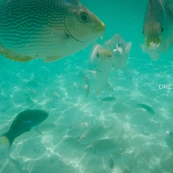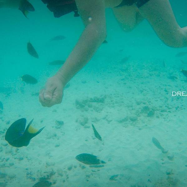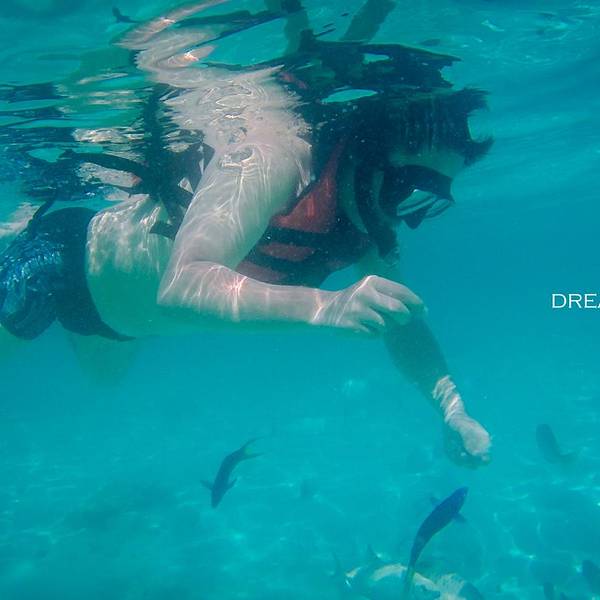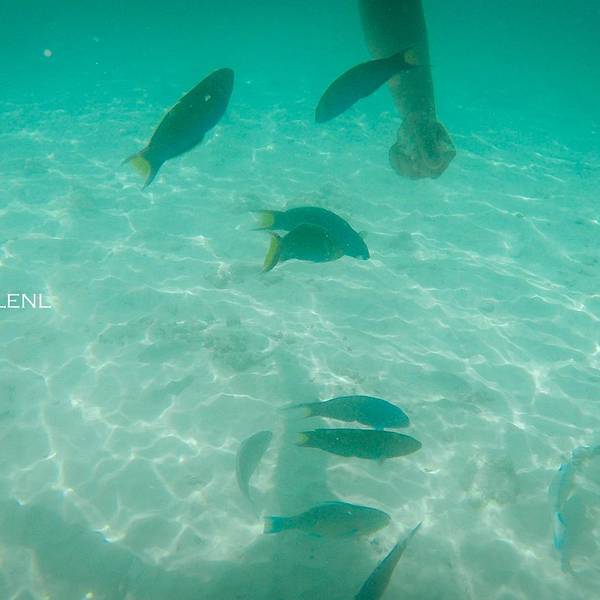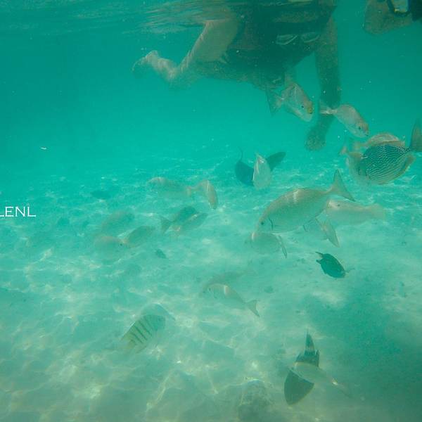 别走啊,再多玩会呗行驶了大概30分钟,我们抵达第一站,游客们都撒了欢的泡在水里。我也按耐不住,脱掉衣服,拿上Gopro就往水里游去,他们三个在岸上立马跟来。水质很好,清澈见底,还有白色的小鱼。发现旁边浮潜的哥们,竟然带了面...行驶了大概30分钟,我们抵达第一站,游客们都撒了欢的泡在水里。我也按耐不住,脱掉衣服,拿上Gopro就往水里游去,他们三个在岸上立马跟来。水质很好,清澈见底,还有白色的小鱼。发现旁边浮潜的哥们,竟然带了面包!
