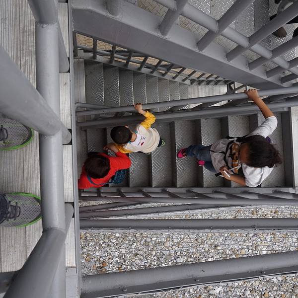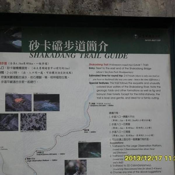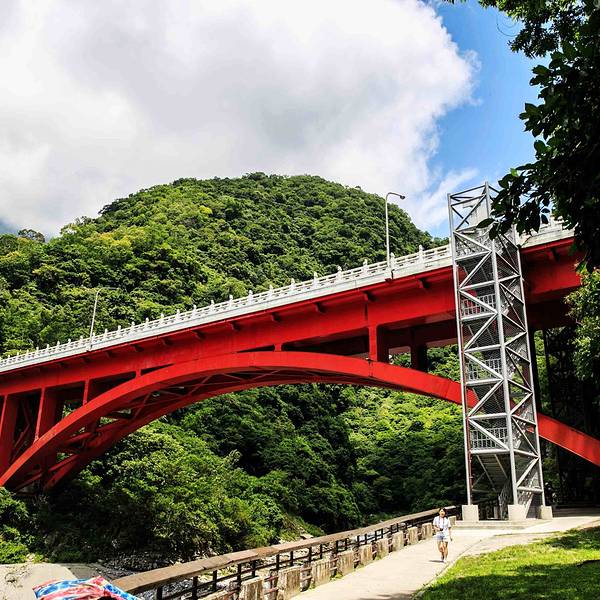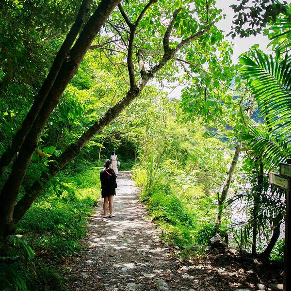 沿著遊客中心前方道路,經過約800公尺長的砂卡礑隧道後,在接連的砂卡礑橋右側,即是通往步道的旋轉梯入口