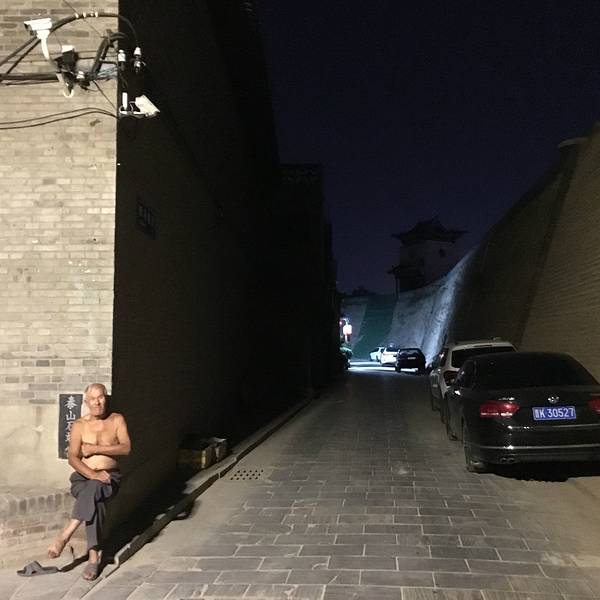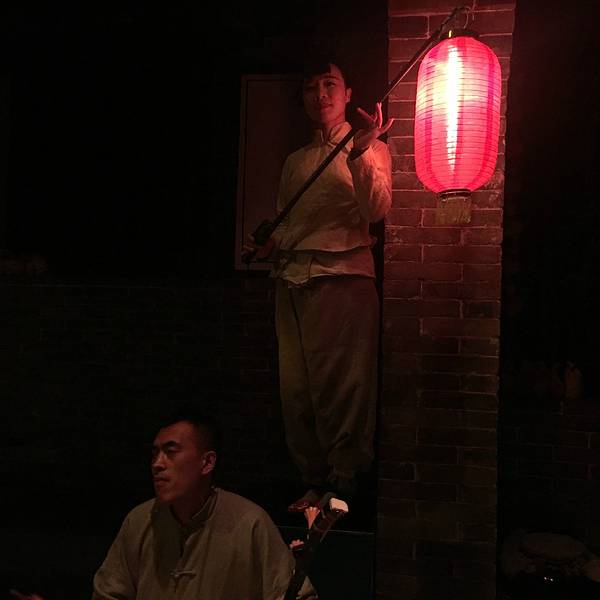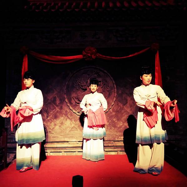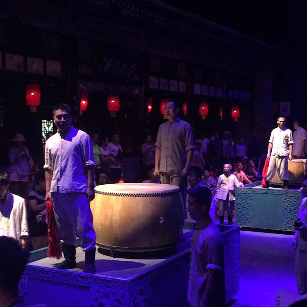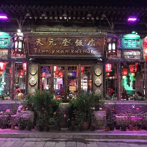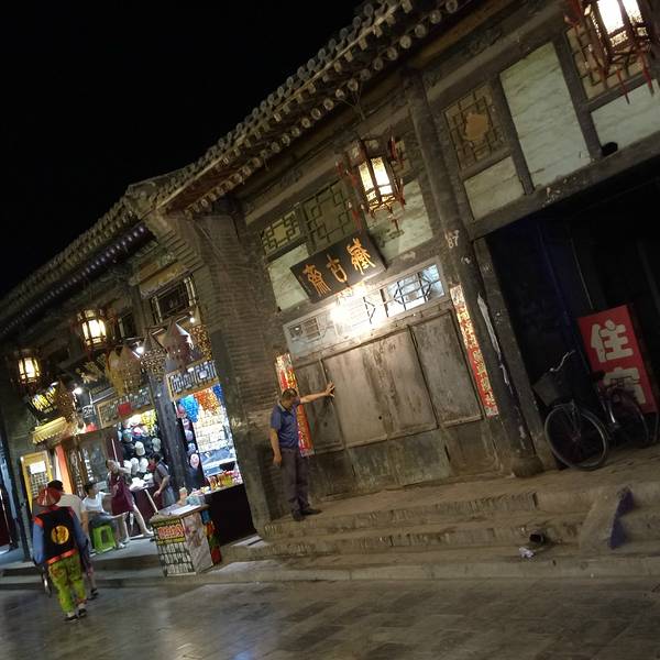 在去西门的路上,直接就开始大众点评各种好吃的东西,因为好饿好饿好饿!古城里大众点评网评价最高的是晋升炉食铺,位于古城内南大街和东大街路口,选定吃饭地点之后,直奔主题去了,吼吼吼~~~对于两个饥肠辘辘的吃货来说,这根本就是...... 你懂得,哈哈! 75元套餐,吃的饱饱的。值得一提是它的店长,真是无敌的温柔,人超级超级nice,还给我们推荐了一个可以预定导游的平台--蹭导游。它上面的一句吸引了我,一个有故事的导游预约平台,本来不打算请导游,这个“有故事”三个字还是很吸引我的。PS:店长太害羞,不太想出境。(图片是在入住的酒店拍摄的,WIFI和密码自动忽略哦)吃过饭之后,决定先回酒店休息一下,因为好热啊,平遥也好热啊,来的这两天正好赶上古城的最高温,也不下雨,最高温度35,快与西安媲美了。预订的客栈正好离吃饭的地方不远,直接飞奔过去。我们是在艺龙网定的民俗客栈,天壹客栈,在南大街,168元一晚,住宿条件是真的不错的,可惜不含早餐。在酒店洗澡、休息了一下,大概下午六点继续出门觅食,逛逛古城的夜景。走起~~~(我闺蜜哦,绝对的大美女一枚,(*@ο@*) 哇~)晚饭基本就是在古城里随便解决的,路边摊有好多小吃,其实味道也一般,但是在古城的映衬下,感觉也不错。随便逛逛路边的那些有个性的小店,顺便买点有特点的纪念品。夜晚的古城真的比白天还漂亮百倍。(这图是要拍小燕子的,看到了么)(大街上散步中,居然偶遇一更夫,哈哈,我是穿越了吗,这里不愧是座古城呢)(坐在城墙脚下乘凉的大爷,惬意得很哦)(这就是我,安安静静享受古城夜景的我,摆拍中,看出来没,(*^__^*) 嘻嘻……)经客栈老板介绍,我们看了情境体验剧《又见平遥》。其实来之前,这台剧早有耳闻的,观看之后果然名不虚传。大概是周六的关系,剧场里人挤人的,还好有空调,不然非晕过去不可。门票价格是238元,客栈老板给优惠了呢。看完演出,结尾的部分,的确如同剧中演员讲的那样:我们感慨我们的姓氏、血脉,感慨我们的家族历史,和血脉里流淌的惊心动魄的故事。(剧场造型挺独特,是用黄土和瓦片修建的)第一幕:《壮士出征》(镖师出征的片段,真的有感动到~~~~(>_<)~~~~,手动为演员点赞)第二幕:《迎接镖队》第三幕:《赵家娶妻》(这选妻阵仗,还是头一回见到呢)第四幕:《面舞》《又见平遥》讲述了一个关于血脉传承、生生不息的故事:清朝末期,平遥城票号东家赵易硕抵尽家产,从沙俄保回了分号王掌柜的一条血脉。同兴公镖局232名镖师同去。七年过后,赵东家本人连同232名镖师全部死在途中,而王家血脉得以延续。