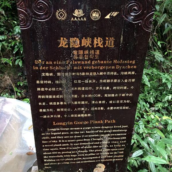 龙隐峡栈道位于青城后山,全长约600米,紧靠峭崖,绝壁处凌空架板通行,古为木桩穿岩铺板,现为钢...龙隐峡栈道位于青城后山,全长约600米,紧靠峭崖,绝壁处凌空架板通行,古为木桩穿岩铺板,现为钢筋混凝土仿木重建,宛如隐身于峡中的长龙。