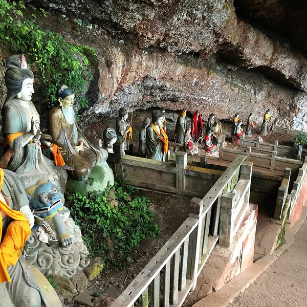 ...会有一点难受吧 沿着洞旁的路一路向上(非常非常陡 需要手脚并用)终于爬到了山顶 到达了白云古寺继续向向上爬会到达一个破庙 叫玄庐 据说是地震后毁坏的 一路上遇到很多华丽的寺庙我都 没有捐过香火 但是看到这样的小破庙 突然心生不舍 捐了点钱
