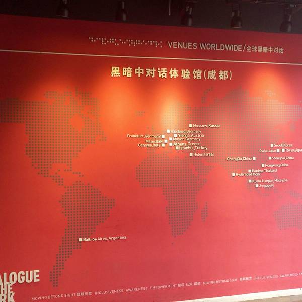 金骆驼 2:门票分为周末票价和平日票价,周末票价是120元,学生证半价60元。当然一楼区域还有卫生间【前言】不知道该从何分享这次体验过程。以前未有过的暗黑体验,在这里感受到了一个不一样的世界。同时也增进了赋能、团队、自信。我相信每一个到来的朋友在体验之前都不太明白或者说理解什么是黑暗中对话体验,...【前言】不知道该从何分享这次体验过程。以前未有过的暗黑体验,在这里感受到了一个不一样的世界。同时也增进了赋能、团队、自信。我相信每一个到来的朋友在体验之前都不太明白或者说理解什么是黑暗中对话体验,但是我一定坚信,来到过的朋友肯定会将这里所发生的一切化为一种正能量伴随今后的工作与生活中。【体验过程】9月3日参加了去哪儿攻略“蓉城寻宝”活动,有幸与队员们一起体验了一次黑暗中对话。我们进入大门的左侧就是前台,在这里可以简短的河服务人员了解整个体验过程注意事项。在大门的右侧是一道形象墙,标注了黑暗中对话的全球门店。在旁边是一间小型的会客室。有一台投影仪和许多凳子,在这里可以举办很多团建活动后总结的好去处。当然我们这次去哪儿网举办的小结也是在这里举行的。在大厅的左侧是休息区域,这里可以点一些咖啡,和饮料。另外一块区域同时也展示了一些小小的科普教育展板,当然都是和黑暗中对话有关的内容。在体验的过程前引导员会告诉你需要把【重要物品寄存】,比如【眼镜、手表、首饰、手机、发光物品等】有人就说了,没有眼镜怎么走路。我想说体验过程中真的是不需要眼镜的,因为黑的什么都看不见,一点影子或者物品投影都没有。当然一楼区域还有卫生间。正式的体验场地是在整个2层。引导员会发一个手杖给每一位体验人员。并且全程是有游玩的特殊引导员带领的。不用担心任何问题的发生。从进入幕布帘子的那一刻开始你就算进入了黑暗的体验中,随着光线的逐渐暗淡你会身临其境的在黑暗中与引导员对话完成每一项体验任务。在这里我就不更多的透露体验过程了,因为需要保证一定的【神秘感觉】。但是我想说的是当每一位体验过程完毕后你会收获一份自信,一份感动,一份珍惜一切所拥有的事物。只有体验过的人才能明白,这也正是黑暗中对话的魅力所在。【重要提示】1:黑暗中对话体验馆的地址在成都市锦江区滨江东路232号,可以乘车56路、82路在滨江东路下车即可。或者从春熙路地铁口走路到门店也仅仅只需要15分钟左右。2:门票分为周末票价和平日票价,周末票价是120元,学生证半价60元。平日票价是100元,学生证半价50元。3:开放时间是周二到周四10:00-18:00、周五到周日10:00-20:00。发团时间是每15分钟一次。4:需要注意的是【建议5人】以上组队一起玩,因为很多活动是需要团队协作的。5:整个体验时间是75分钟左右。6:周围环境、出门右转的巷子有一些餐馆,我们中午就是在这里吃饭的。或者步行到春熙路商业圈15分钟就到了。都很方便。 展开