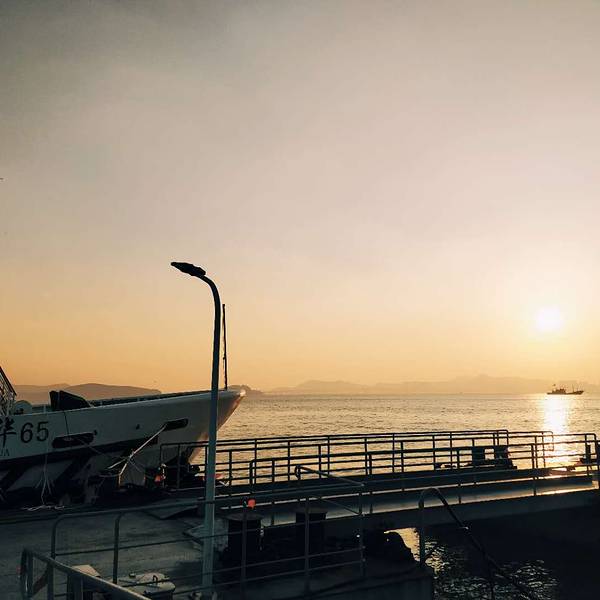 虽然,去的时候,看着很黄的海没有那种面朝大海的兴奋,可回来的时候,有很大的惊喜。落日超美的。站在码头,可以看到最美的落日慢慢的沉浸海底,落日余晖打在船上的感觉特美。而且海里的水都干了,应该是朝落了,此时可以到海平面有一群海鸥自由的飞翔或者停留在海面上。此时此刻,好想静静地享受。可惜,为了赶轮渡,个人建议,可以早点到码头欣赏最美的落日。