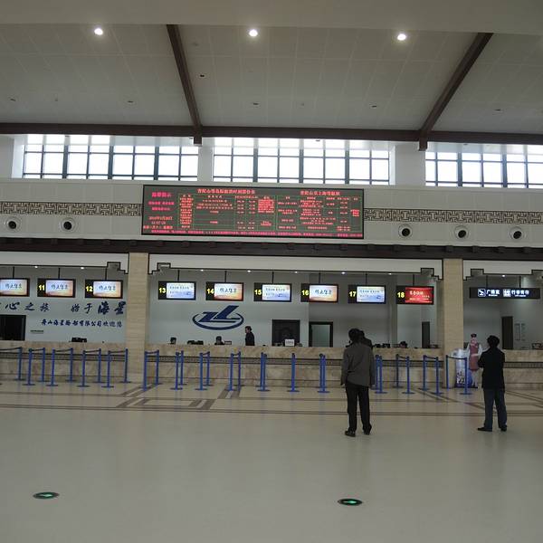 朱家尖蜈蚣峙码头的购票大厅很宽敞,一进大门就可以看见一块巨大的显示牌显示着当日渡轮的时刻表,给旅客提供了极大的方便。朱家尖蜈蚣峙码头是舟山主要的客运码头,每天有很多班渡轮往返于普陀山和舟山本岛之间,船票是25元/人。码头的购票大厅里还代售普陀山门票,普陀山的门票160元/人,70岁以上的老年人凭身份证免票上岛。