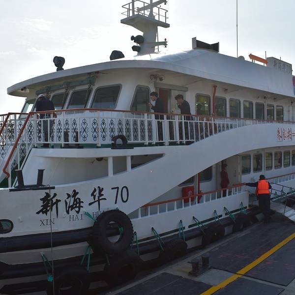 普陀山到蜈蚣峙的客船,跟半升洞的不一样,有两层从普陀山坐船十来分钟就到蜈蚣峙码头,票价¥25,
