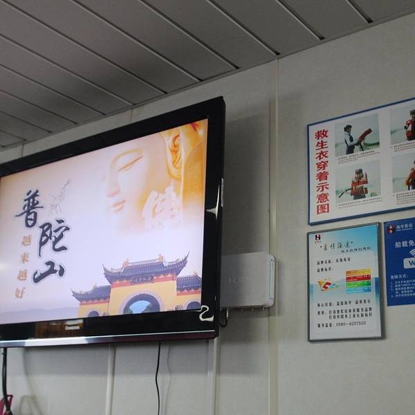 从朱家尖蜈蚣峙客运码头到普陀山的船票是每人每票25元,需要凭身份证购买。买了票基本都是随船随坐,所以几乎不用怎么等船,我们是一买到票就可以上船了。找位置坐下吃点东西,看看普陀山景区介绍视频,大概15分钟左右就到普陀山啦。