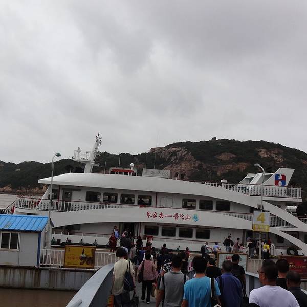 终于等到了周一,出发普陀山。普陀山蜈蚣峙码头建筑很有特点,号称海上布达拉宫,可能有人觉得配不上这个称号,但是要知道这里建设以前可非常丑陋的裸崖,就是开采过后裸露的岩石,特别难看。经过巧妙地设计之后...终于等到了周一,出发普陀山。普陀山蜈蚣峙码头建筑很有特点,号称海上布达拉宫,可能有人觉得配不上这个称号,但是要知道这里建设以前可非常丑陋的裸崖,就是开采过后裸露的岩石,特别难看。经过巧妙地设计之后,把海岛民居的主要元素解构、融会贯通,赋予其时代的新概念,成为了这样有特点的建筑,至少变成了不错的景观,还是很值得肯定的。这里有很大很大的停车场,但是周末来的话肯定爆满,堵车先不说,找地方停车都很吃力。所以如果自驾车来的建议把车停在朱家尖的宾馆,宾馆停车全都免费,我们住的莲花路旁也都是免费的停车场,而这里停车费一天要48元,要是过夜的话绝对不如打车合算。朱家尖蜈蜙峙码头到普陀山船票25元一人,沈家门半升洞码头略贵几块。普陀山进山门票根据季节不同价格会有变动,淡季(12月和1月)140元,旺季(2月-11月)160元,每逢节假日票价上浮至200元。购票点可以刷卡,网上购买门票没有任何优惠,旺季建议大家还是提前网上购票,凭短信里的兑换码在景区门票购买点旁的咨询柜台领票,可以避免排队。早上尽量早点上岛,尤其是周末,六点多就有上岛的第一班船,这时候人不多,不用排队耽误时间。八点开始是旅游团进岛的高峰时间,这时候赶上排大队,上岛基本就快中午了,起码10:30庙里的素斋是赶不上了。离岛的时间可以晚一点,据说最晚回朱家尖的船到晚上22:10,所以有充足的时间。比较偏远的寺庙虽然17:00就差不多关门了,但三大寺晚上不关门,而且17:30以后进去免收香火券。