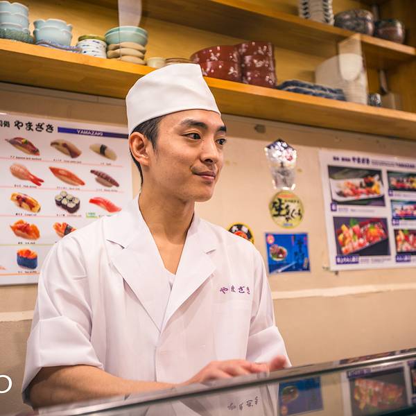 然后我们选择了一家人相对较少的寿司店,这家寿司店的小哥好帅哈哈哈~~