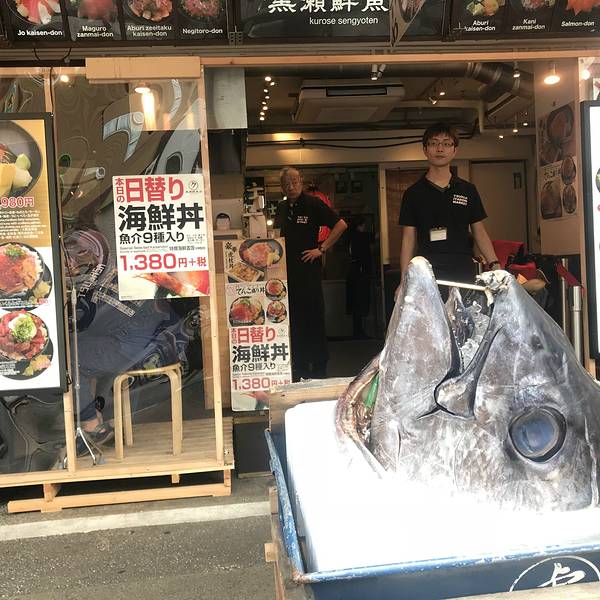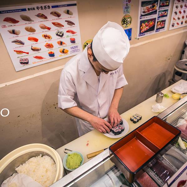 在这里,你可以品尝到全世界最最最新鲜的寿司,如果你从凌晨两点在这里蹲点,就可以拿到一个限制名额的号码牌,准备观看全世界稀有的三文鱼等刺身鱼类的拍卖。普通的行程是,早上醒来,直接来这里,把早餐和午餐全在这里吃了。这里有很多著名的寿司店,建议看到排队人多就去那一家。当时为了省时间,所以我去了一家不需要排队的寿司店。那家店的寿司师傅都比较年轻。然后经过那家排对很多的寿司店,发现里面的师傅年纪比较大,感觉经验比较足。