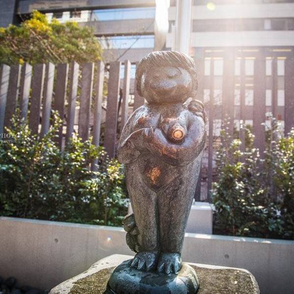 每位来祈福的人都要给这里的河童舀上一瓢水,从河童的头上浇下去,据说,不能让河童干枯,要时刻保持湿润,河童才会保佑前来祈福的人们。传说其弱点为头顶的碟,只要诱骗河童弯身,让他头顶碟子里装的水流尽,他就会变得很虚弱,法力尽失。河童最早起源自中国黄河流域的上游,日本传说的河童住在日本各地的河川或池子里,根据民俗学者石川纯一郎的研究资料,河童传说分布极广,包括日本的东北地方、中部地方、近畿地方、关西的石川富山县、中国地方、四国地方、北九州岛地方、九州岛的佐贺,宫崎县以及奄美诸岛和冲绳县,依据各地方言的不同,河童的称谓也不同。共通点是居住在河川的孩子所以叫做河童。原本河童是水中的精灵,被当做是河神受到民众的膜拜,也有一种说法是河童是水神的使者,由水神降下的霜幻化而成。传说河童身高大约60公分至1公尺高,体重只有45公斤左右,属于瘦的体型,看起来像3岁至10岁的小孩模样,长得像人也像猿猴,身上会发出臭味,并且有粘液,不容易捕捉,另外,河童的背上负有一个乌龟般的甲壳,而皮肤表面则附著有溜滑的透明黏液,如同两栖类般,传说河童喜欢小孩子,喜欢和他们玩相扑。地址:东京都中央区日本桥蛎壳町二丁目4番1号