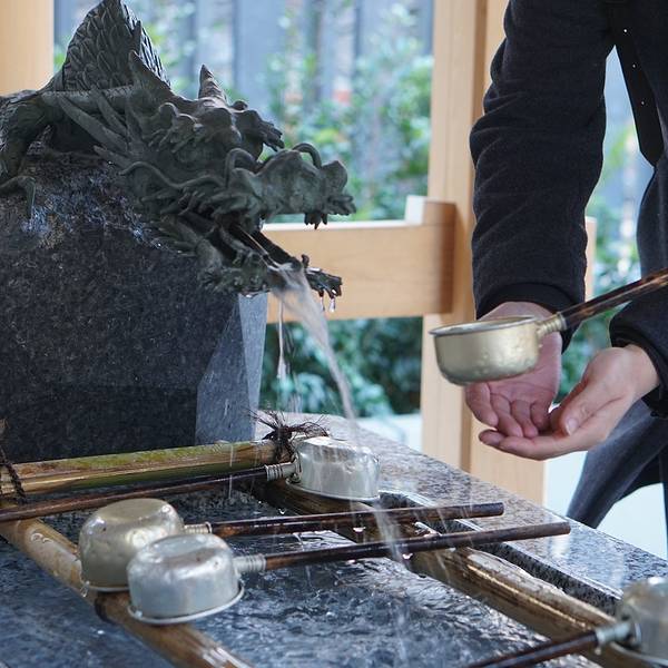 这是个自古以来就被授予顺产和赐子之神的神社,“御子腹带”(保子腹带)是纯良的原色木棉布,巧用一如既往的自然手感,可温柔的守护和支持孩子的腹带。据说准妈妈在怀孕第五个月的时候,到这里求一求、拜一拜,能保佑母子平安。 这里每天都有很多夫妇或其家人到此祈求平安生产或送子,当然也有很多是为了还愿、满月参拜等而来。水天宫是日本桥七福神中具有代表性的神社,所供奉的弁财天在知识与财富方面是很灵验的神灵,据说是一个很有神力的促进子嗣繁衍的地方,现在也因为这显而易见的仍然地在继续受欢迎中。即使是今天的日本的小孩子出生,和妈妈们祈祷一个平安的生产也都会来这。新的神殿是建在另一个新的相关的神殿的顶端的,雕刻得很漂亮,也持续不断地接受崇拜者的敬拜。这个寺庙刚刚被重建,在2016年的4月开放。新的寺庙以传统的方式改造,如木头镀铜所制的屋顶。以前的寺庙顶涂混凝土,也非常漂亮。这是东京最新的寺庙建筑了。非常干净,重建得很好。虽然没有了传统的老旧感觉,但是它的精致工艺是个好榜样。水天宫是七福神巡礼的神社之一,是一座把现代设计和神社传统完美结合的建筑。这里是东京人民祈求安产和孩子平安成长的神社,很受社区居民喜爱,周末能看到非常多的父母带孩子来这里祈福玩耍。是个感受东京市民生活的好地方水天宫里著名的就是子宝犬,日剧迷的话若有收看阿部宽的「新参者」就不会对此神社陌生!子宝犬可以祈求孩子的安康,每个带小朋友的妈妈都会让孩子摸一下。水天宫虽然是翻修建筑,但其整个建筑结构的设计还颇为有意,日本自古以来就是一个地震频发的国度,最近的也是最有影响的一次3.11大地震至今都还影响着日本,在其建筑前都会充分的考虑抗震这一因数,在新修的水天宫下,地基与上层建筑依靠众多的水泥支架紧密的联系在一起,用来抵御未来不确定的地震,而上方的水天宫依旧返还以前的建筑格式,并安放河神等神灵雕塑,供民众求子祈福之用。