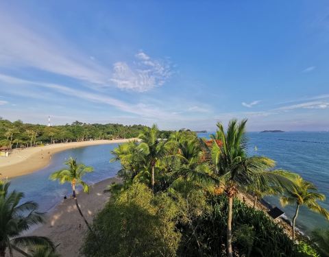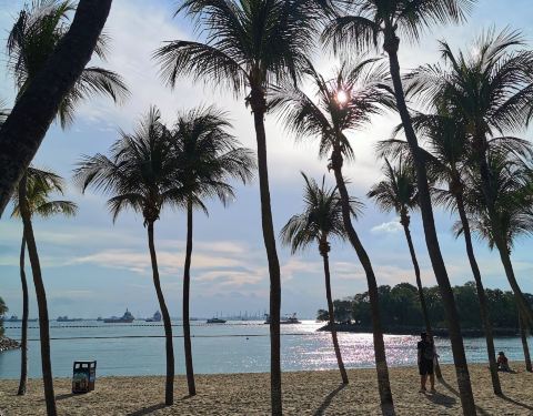 整个海滩上沙质非常的柔软,海水也十分的清澈干净,是一处非常宁静惬意的海滩,值得来走一走坐一坐圣淘沙海滩位于圣淘沙的东北岸,它可以远眺对岸繁华的新加坡海港。整个海滩上沙质非常的柔软,海水也十分的清澈干净,是一处非常宁静惬意的海滩,值得来走一走坐一坐。