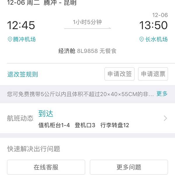 到达腾冲时已经是晚上6点...飞往腾冲的机场全部都需在昆明转机,从昆明飞往腾冲的航班每天都有好几班,不到1小时的飞行距离。