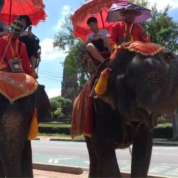 对了 这里是免门票蒙坤巫碧寺的小时候?这就是目前泰国最大的青铜佛像,高12.5公尺,宽9.5公尺,在祂脚下更感觉自己的渺小。。。来到大城的时候看到有大象在马路上行走 我姐说不提倡大家骑大象 会是一种虐宠的行为 因为大象被认为训练的时候其实是很痛苦的 出来停车场又看到两匹大象供游客骑 我姐又跟我说有点想骑 这脸打得有点响 哈哈哈 展开